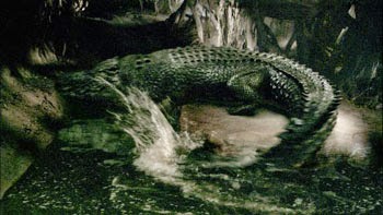 ใขณะี้ัโผล่ร่าาขาราๆ แปเตร ขัลคู่ลา้ำ เทเลืที่เคขาู่รๆ ตััลัไหลเข้าไปรู่ใตัั ลาเป็รเทขาใหญ่หลัขั รเทั้เรืแสครู่หึ่่จะสูญสลาไป เหลืเพีจระเข้ตัใหญ่ที่ำลัลืตาขัขึ้าช้าๆ