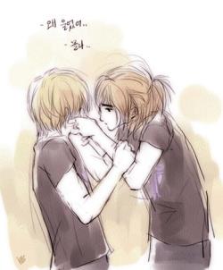 " ไม่เป็นไร " ใบหน้าหล่อก้มหน้าลงเช็ดน้ำตา และพูดออกมา ร่างสวยทำหน้าเศร้าหนักกว่าเก่า ก่อนที่จะเข้าไปกอดร่างสูง