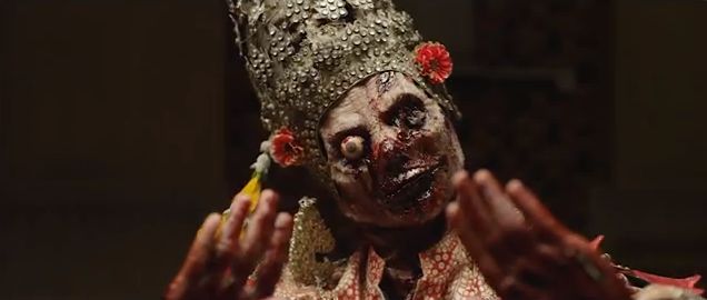 เสียงกรีดร้องอย่างทรมารดังก้องไปทั่วทุกหนทุกแห่ง เมื่อกรีดหน้าผีปอปจนเละเด็กสาวใช้แขนปาดเลือดบนใบหน้าแล้วหยิบชฎาที่ผีปอปแก่ขโมยไปกลับคืนมา