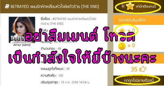 โหวตหรือคอมเมนต์สั้นๆ เป็นกำลังให้กันบ้างนะคะ