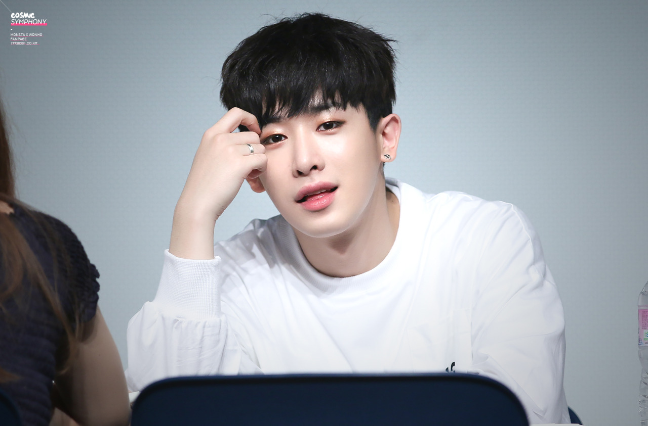 Monsta x:(จากขวาไปซ้าย)ชยอนู มินฮยอก วอนโฮ จูฮอน กิฮยอน ไอเอ็ม ฮยองวอน